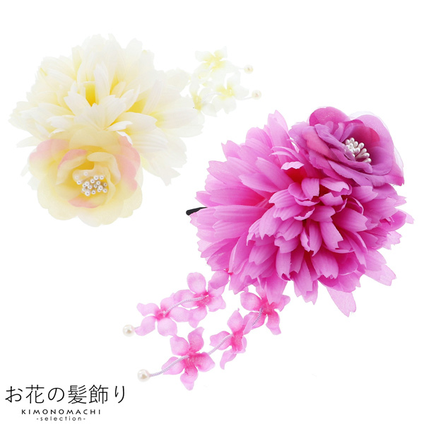 【Prices down2】浴衣 髪飾り「お花のクリップ髪飾り 白・ピンク」ヘアアクセサリー 大人 レディース 着物 髪飾り 浴衣 子供 髪飾り単品 【メール便不可】ss2512wkk55