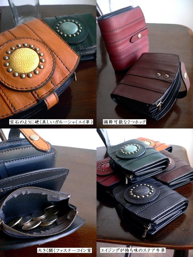 moquip モキップ ガルーシャ ステアレザー 折り財布 WLG06184 オークル/キャメル/グリーン/ブラック/ワイン/ネイビー