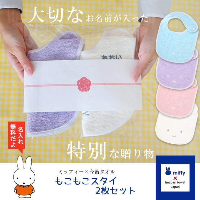 出産祝い 男の子 女の子 名入れ 新生活 入園 入学祝い 今治タオル ミッフィースタイ2枚 ギフトセット 刺繍 双子 出産祝い プレゼント 簡易ラッピング無料(のし指定不可) ギフトセット よだれかけ ギフト ビブ 名前入り 育児グッズ ベビー用品 送料無料