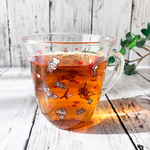 当店限定 水森亜土 耐熱ラウンドマグ 当店限定販売! 亜土ちゃんのイラストをあしらった、透明度の高い耐熱ポットです。 アートはフレンチのチラシ柄。紅茶が映える色合いを考えて作りました。 マグは腰高で、つるりとしたラインの美しい形です。 きれいな発色の秘密は国内での焼き付けです。ガラスにもこだわりました。 同時発売の水森亜土デザインのティーポット、2種の国産紅茶とセットで水森亜土の世界観に浸って、素敵なティータイムをお楽しみください。 ◆サイズ:直径8.5(持ち手含11.5)×高さ8.5cm