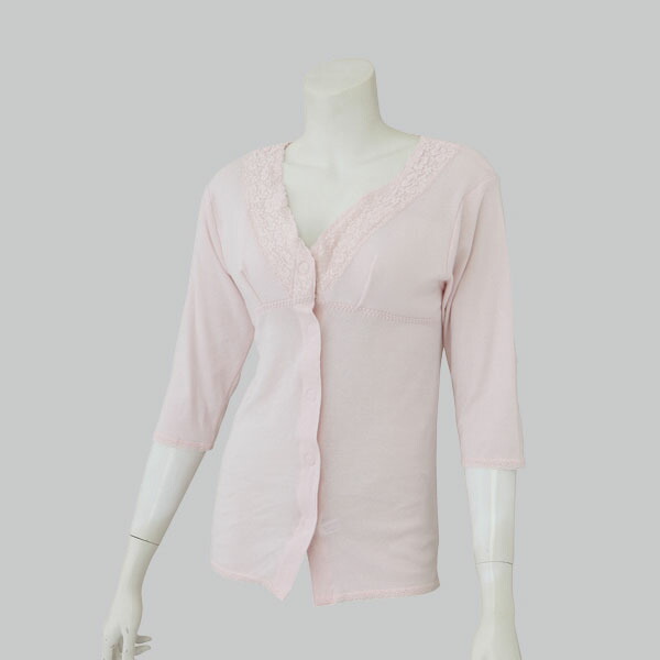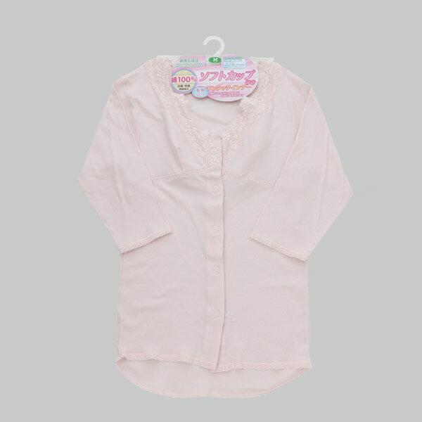 ソフトカップ付 前開き 7分袖 ワンタッチテープ式 抗菌防臭 綿100% M/L/LL | 介護 通院 レディース 綿 ブラトップ 長袖 肌着 インナー