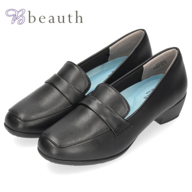 Beauth ビュース パンプス レディース ワイズ 3E BT-606 ローファー スクエアトゥ フォーマル リクルート ビジネス オフィス 軽量 防水 抗菌 防臭 黒