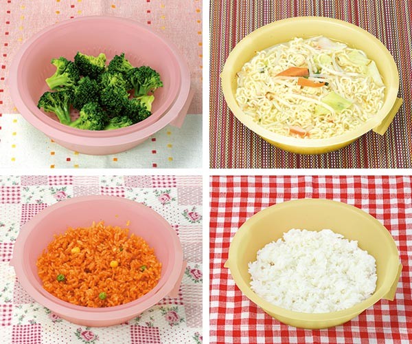 ゆでる、蒸す、煮る、解凍、炊くの調理が電子レンジに任せるだけで料理が完成します。パステルカラーの容器は調理してそのまま食卓に出すこともできます。1人暮らしの方や、あともう1品欲しい時にぴったりです。
