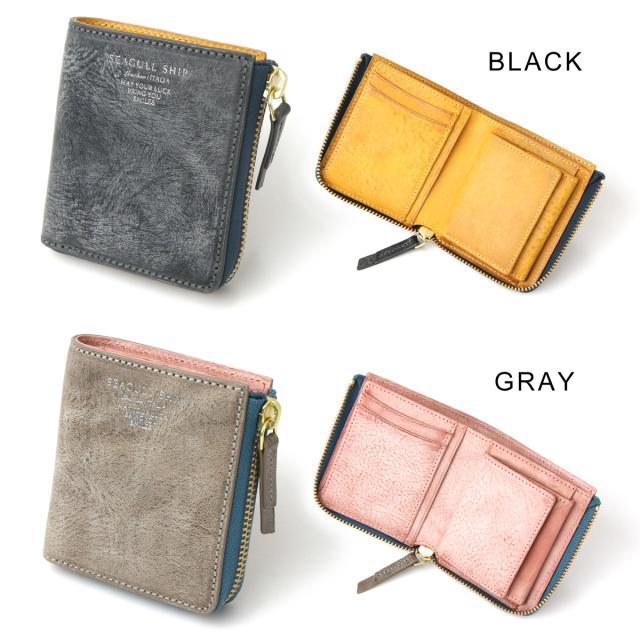 名称:Seagull Ship アラスカレザーラウンドファスナーミニ財布/L字ファスナー二つ折り財布