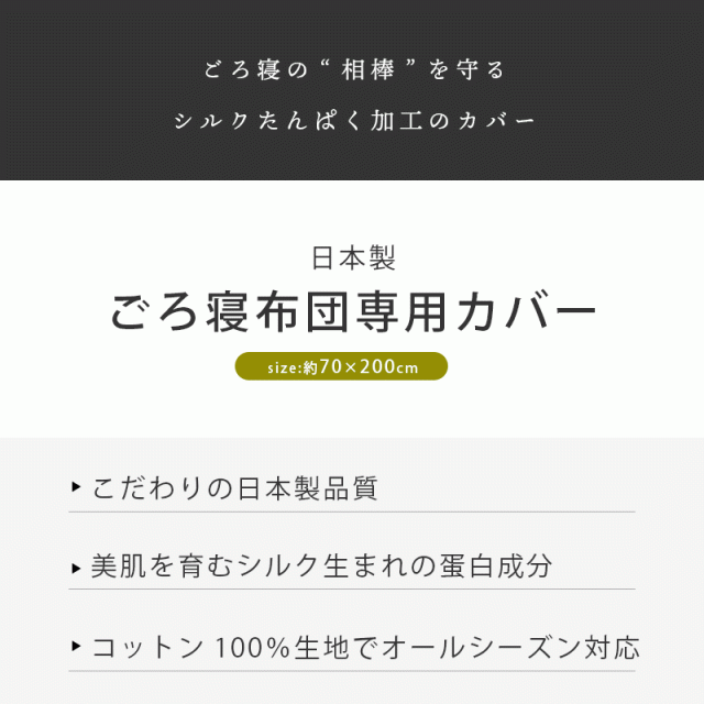 カバー ごろ寝布団 専用カバー 約70×200cm 長座布団 長座布団カバー 綿100% シンプル 無地 ファスナー イナズマ ごろ寝布団にも