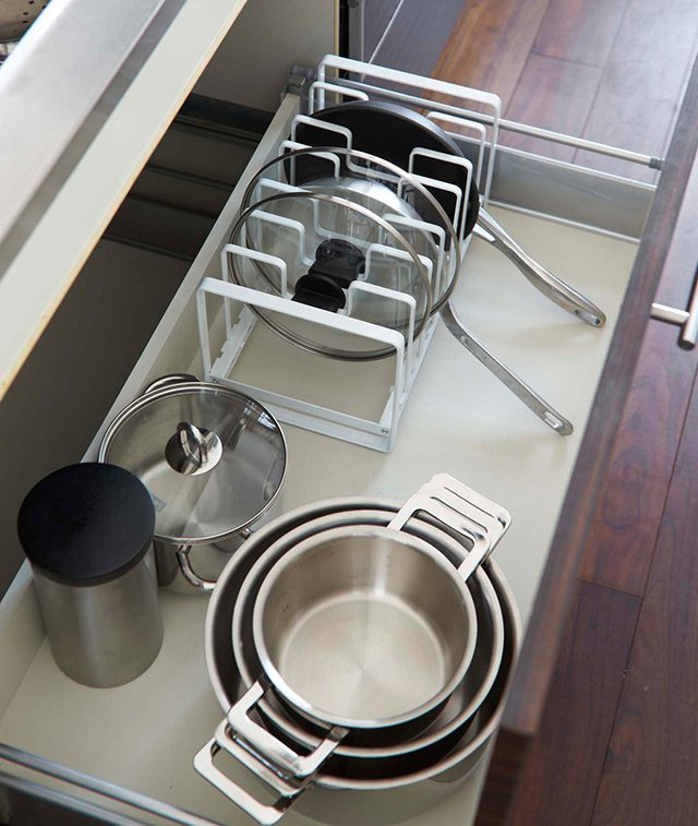 フライパンや鍋・鍋蓋などをまとめて収納!