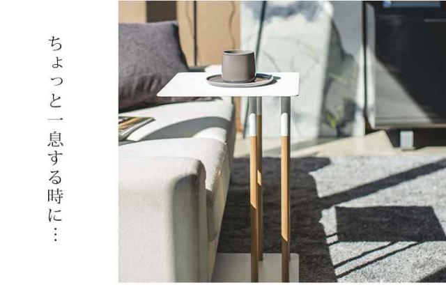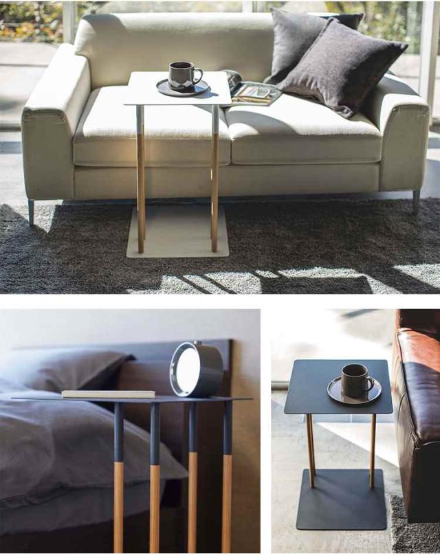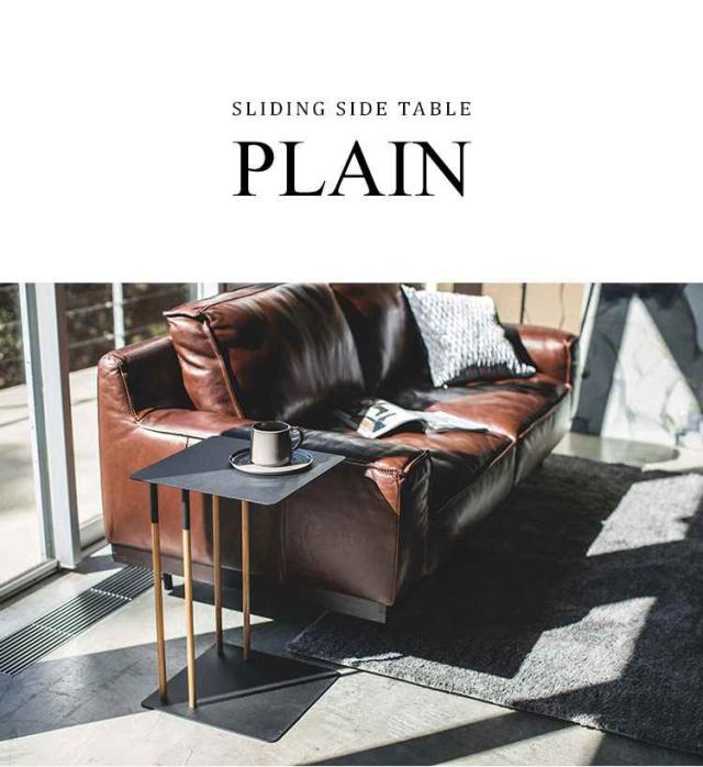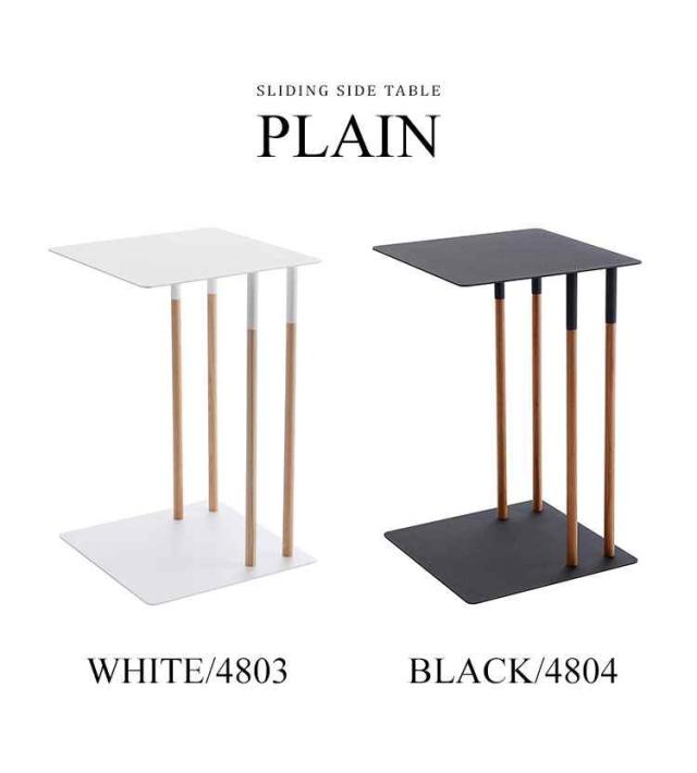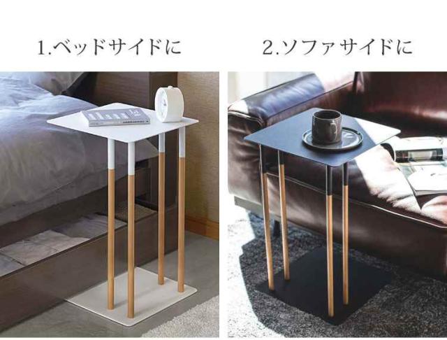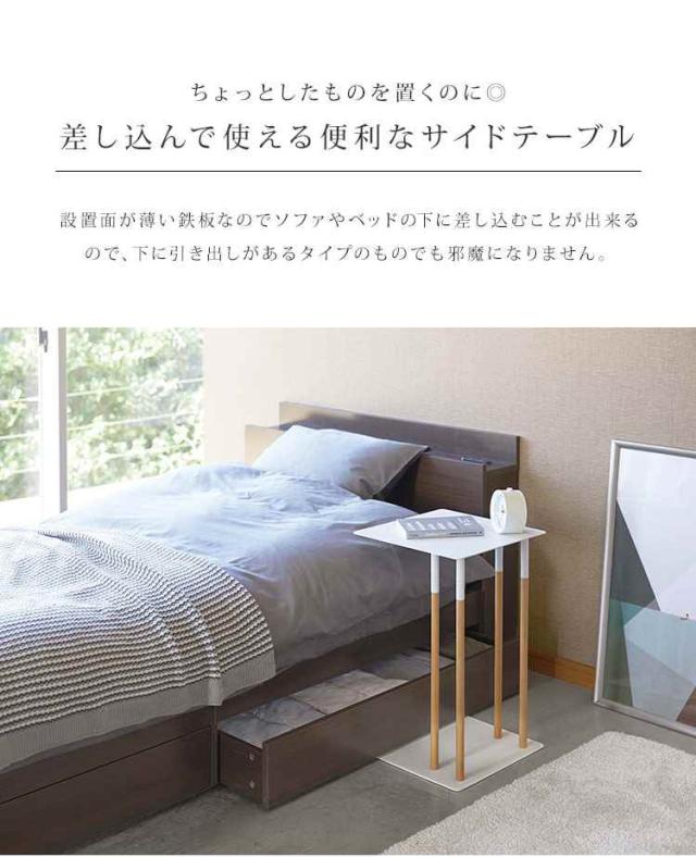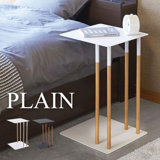 サイドテーブル おしゃれ 北欧 PLAIN プレーン 山崎実業 コの字 収納 机 テーブル 木 ベッドサイド ソファサイド ソファテーブル オシャレ リビング 寝室 ブラック 黒 ホワイト 白 省スペース 天板 ウッド 四角 ナイトテーブル 差し込み サイドデスク シンプル 送料無料