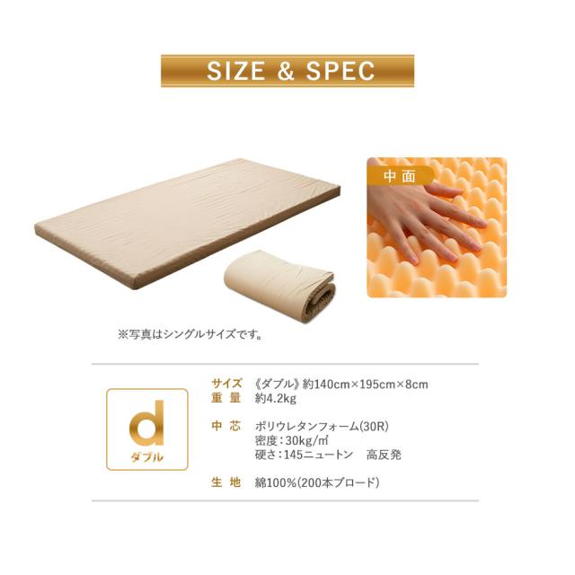 | サイズ | ダブルサイズ:約140×195×8cm (重量 4.2kg) |