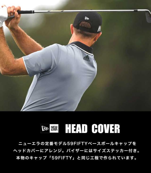 ニューエラの定番モデル59fiftyベースボールキャップをヘッドカバーにアレンジ。 バイザーにはサイズステッカー付き。本物のキャップ「59fifty」と同じ工程で作られています。