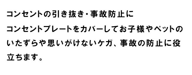 コンセントプレートをカバーしてお子様やペットのいたずらや思いがけないケガ、事故の防止に役立ちます。 1〜3口のコンセントにご使用できます。