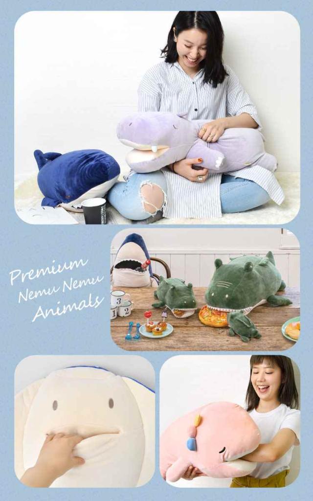しっとり&もちもちのプレミアムな柔らかさととろけるような触り心地が大人気のプレミアムねむねむアニマルズシリーズ。抱きがいのある大きめのサイズ感が◎くたっと力の抜けたシルエットと表情を見ているだけで日々の疲れを緩和してくれそうです♪かむかむズは口の中に手や足、頭!?を突っ込めちゃう!インスタ映えの写真をとったり、手を突っ込んで枕にしたり、使い方いろいろ♪ご自分にはもちろん、ご家族やお友達へのプレゼントにもオススメです。