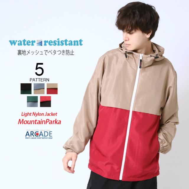 マウンテンパーカー メンズ 春新作 撥水 防風 メンズ ライトアウター ウィンドブレーカー ナイロンジャケット ジャンパー・ブルゾン ジャケット きれいめ おしゃれ かっこいい シェルジャケット メンズファッション くすみカラー ARCADE アーケード