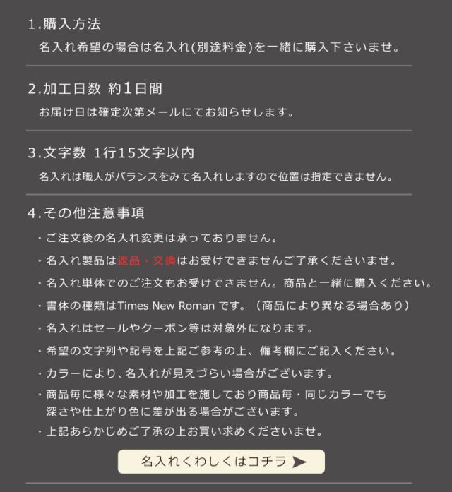 ※当店で使用している本革は全て本物の革を使用しています。その為、皮革の模様など掲載画面と異なる場合がございます。また天然皮革に関してはワシントン条約を元に適正に輸入された商品を販売しています。 ※使用上の注意 本革は水分を嫌いますので、もし水に濡れたときには乾いた布で水分をふき取り、 直射日光をさけ、自然乾燥させてください。 ※革の取り扱いについて詳細は[皮革の取り扱い・保管の方法]をご確認ください。 |