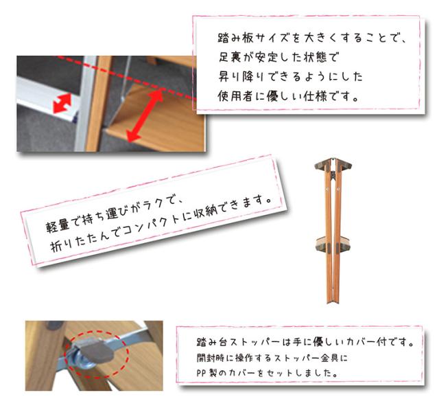 | ・商品サイズ・・・開いたサイズ(約)36*28*30cm、折りたたんだサイズ(約)36*16*33cm ・製品重量・・・1.1kg ・ステップ高さ・・・30cm |