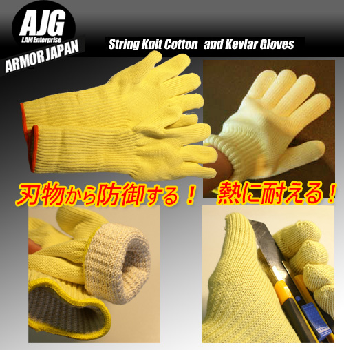 刃物にも熱にも耐えるケブラー100%!! コットン手袋との2層構造