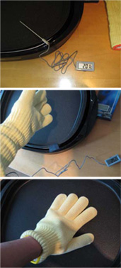 1 断熱手袋では、200℃のホットプレートでは約10-15秒の断熱で耐えられる。
