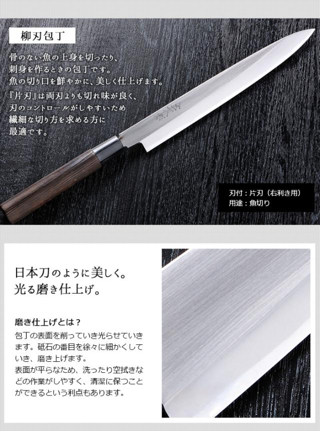 【金次郎 柳刃包丁 刃渡り240mm(桐箱入り)】 磨き仕上げ 刺身包丁 片刃 右利き用 日本製 新潟 三条 燕三条 人気 切れる 使いやすい プロ仕様 本格 おすすめ 便利 母の日 父の日 プレゼント ギフト 送料無料 【b-yanagi】 WKB