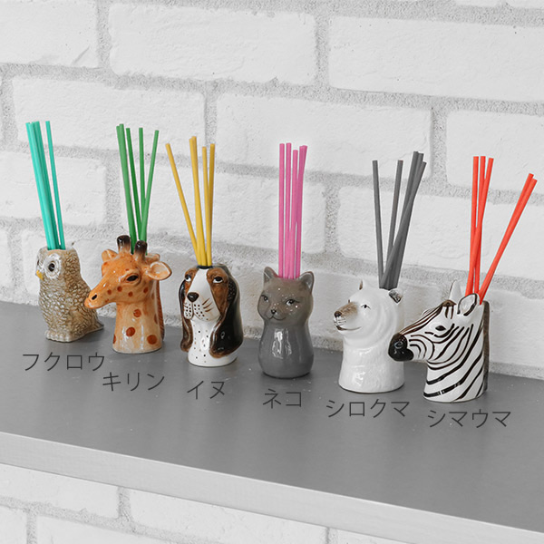 ディフューザー スティック ルームフレグランス 5本 ( フレグランス 芳香剤 アロマ フレグランススティック フレグランスオイル 動物 アニマル カラフル リビング 玄関 トイレ 置物 おしゃれ かわいい )