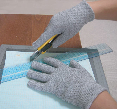 スペクトラガードバンド手袋米国ハニウェル社が開発した、防刃に優れた効果を持つスペクトラ繊維を使用。切創力:12.0N (JIS T 8052) 日本化学繊維検査協会