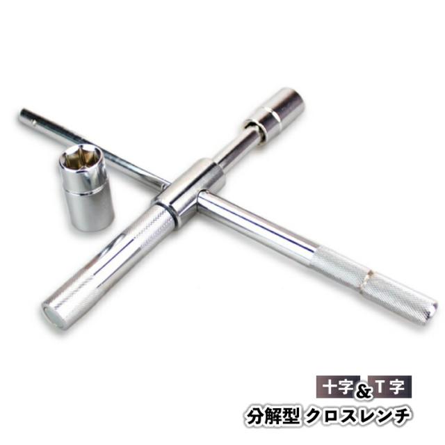 十字レンチ、T型レンチの二つの使い方のできる便利なクロスレンチです
