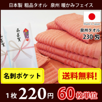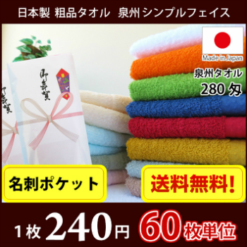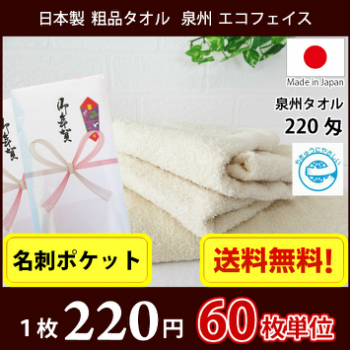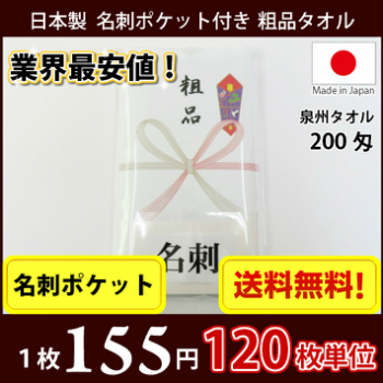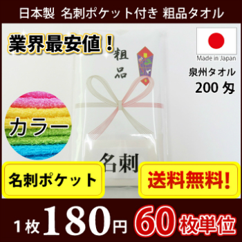 【送料無料】 タオル 粗品タオル 国産 日本製200匁総パイル のし 名刺ポケット付 粗品 お年賀タオル 60枚単位