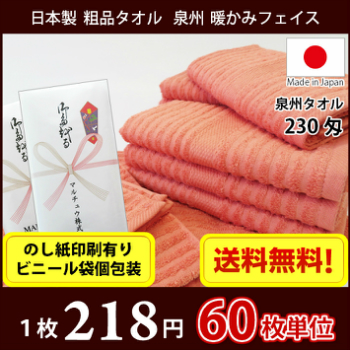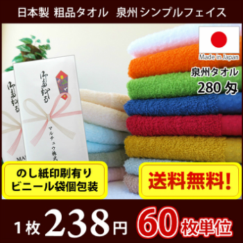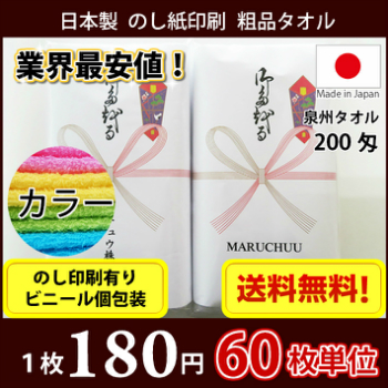 【送料無料】 タオル 粗品タオル 国産 日本製200匁総パイル のし印刷 粗品 お年賀タオル 60枚単位