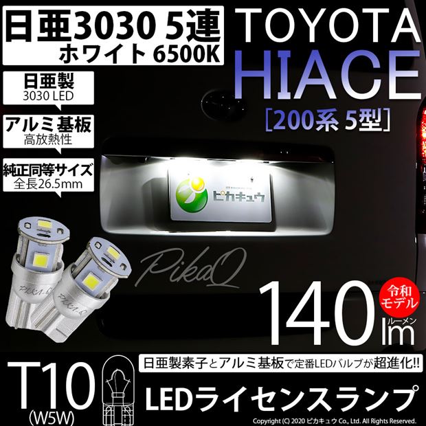 トヨタ ハイエース (200系 5型) 対応 T10 バルブ LED ナンバー灯 ライセンスランプ 日亜3030 5連 140lm ホワイト 2個 11-H-3