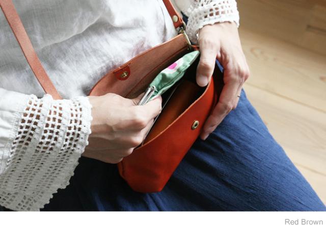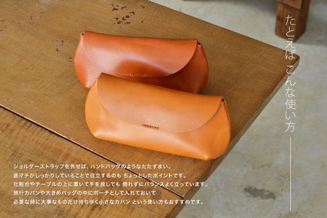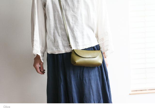 栃木レザーさんの いい革だけで 全部作った ちいさなバッグ。ゆるいカーブの丸いフラップでパチンと開ける シンプルなデザイン。いつものお出かけに たとえば スマホとミニ財布など ちょうどいいサイズ感と収納力の ちいさなバッグです。