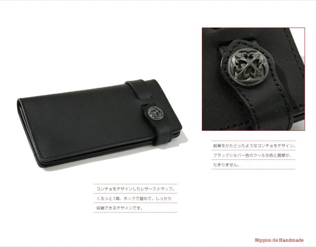 財布 日本製 Nippon de Handmade コンチョ アクセント レザーストラップ レザー 長財布 本革 牛革