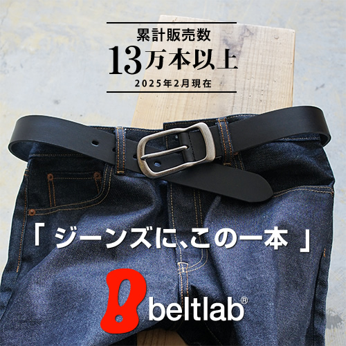 ほどよい厚みに柔らかな質感。しっかり一枚革のベルトラボ自慢のベルトです。馬蹄型のバックルもスタイルのいいアクセントに。ちょっと大きく見えますが着けてみると案外しっくりくるんです。リピーター様も多いロングセラーのベルト。ベルトラボのベルトは日本製です。