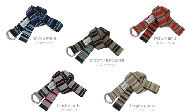 発色のいい楽しいカラーリング、立体感のある手触りのボーダー生地、3.8cm幅のダブルリングベルト。遊び心のある色づかいがウエストマークのアクセントに。サイズ調節も自由自在、5つのカラーリングをご用意いたしました。