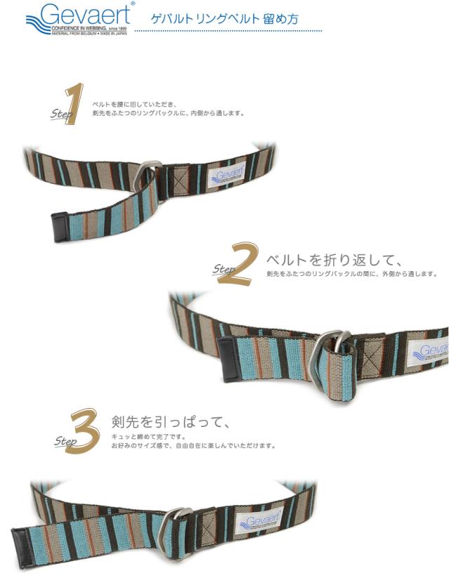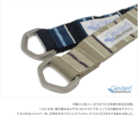 ベルト カジュアル ユニセックス ダブルリングベルト Wリング マルチカラー ストライプ GEVAERT ゲバルト 3.8cm幅