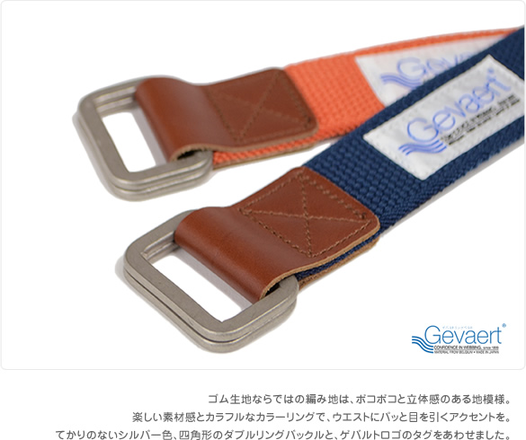 ベルト カジュアル ユニセックス ゴム素材 ゴムベルト 伸縮 スポーティ ダブルリングベルト Wリングベルト GEVAERT ゲバルト 3.5cm幅