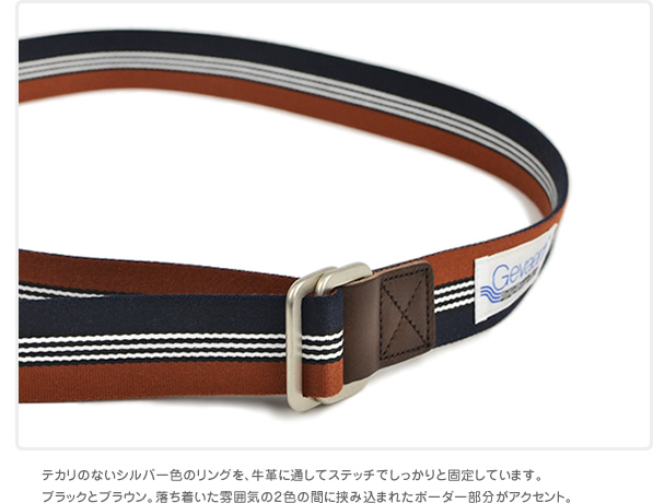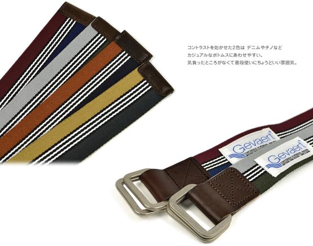 ベルト カジュアル ユニセックス ツートーン ボーダー ダブルリングベルト GEVAERT ゲバルト 3.5cm幅