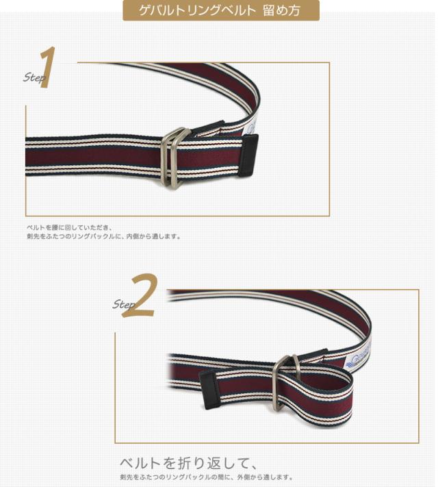 ベルト カジュアル ユニセックス ボーダー ダブルリングベルト Wリングベルト GEVAERT ゲバルト 4.0cm幅