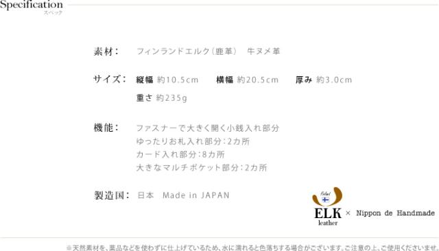 エルク × Nippon de Handmade 日本製 財布 メンズ 長財布 コの字ファスナー 大容量 上品 革財布 本革 レディース