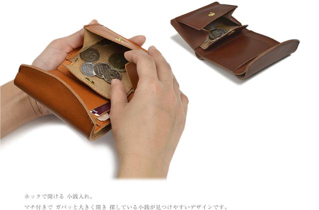 ・マチ付きで大きく開く小銭入れ