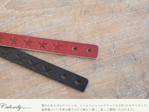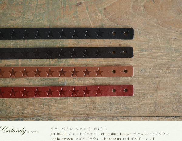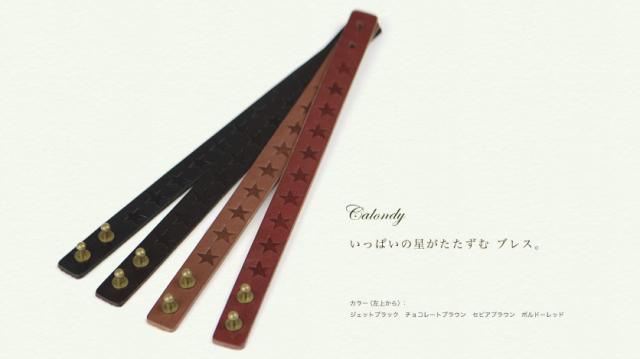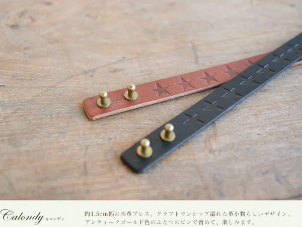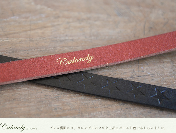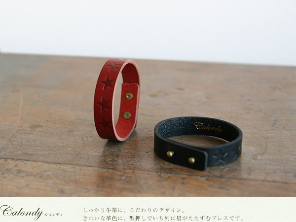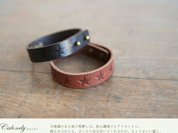 ブレスレット レディース calondy -カロンディ- 型押しデザインの星がきれいに流れる1.5cm幅、選べる4つのきれい色 オトナなニュアンス、牛革の素材感も楽しんでいただける本革レザーブレス