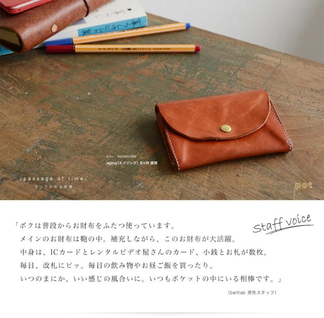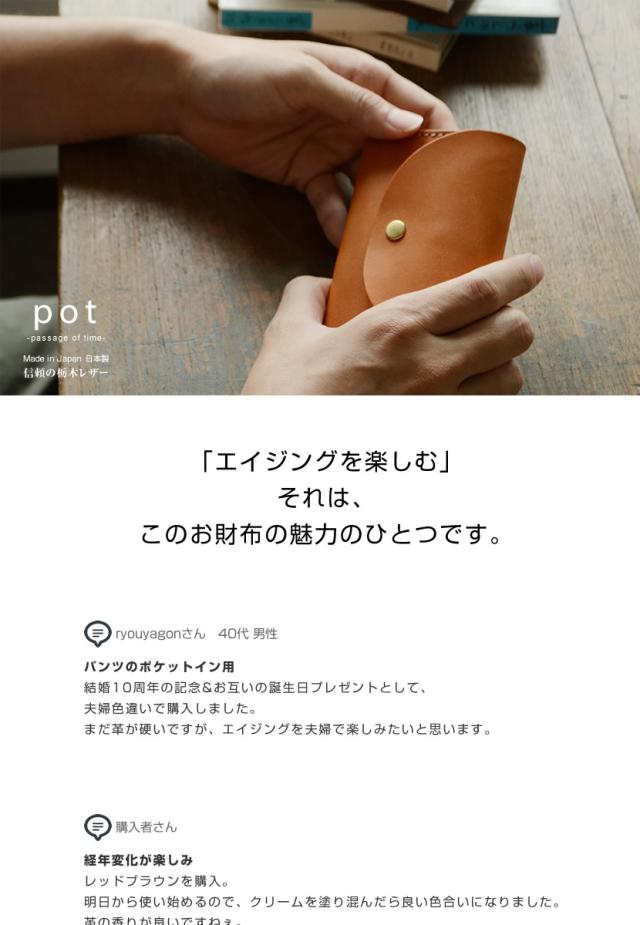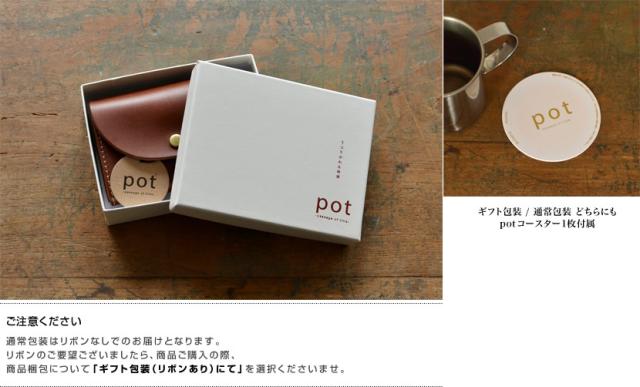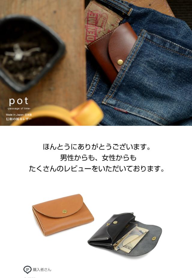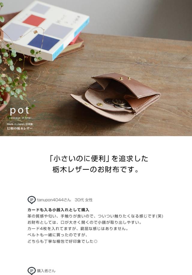 - 自分用とプレゼント用に購入しました。 コインをたくさん入れてもボタンがしっかり留まるし、厚みも出ずスマートで使い勝手がとてもいいです。 プレゼント用は紙袋とpotのタグを付けていただき感謝しています...