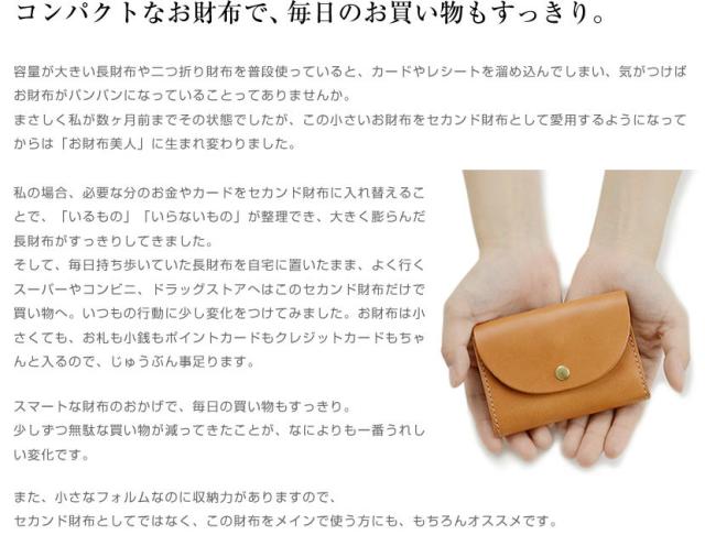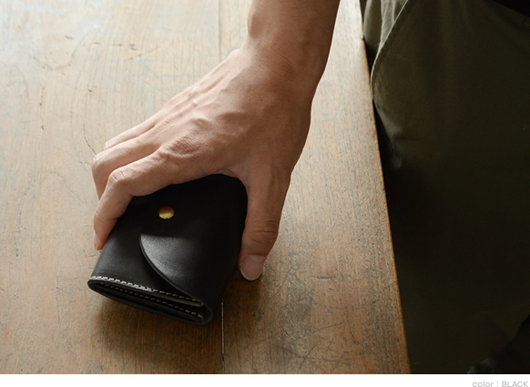 手におさまりがいいサイズ感、いつものカードもコンパクトに収納。しっかり厚みのある栃木レザーを使用した男性にも女性にも使っていただけるシンプルなお財布。