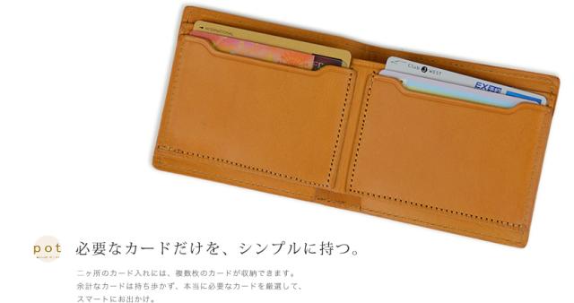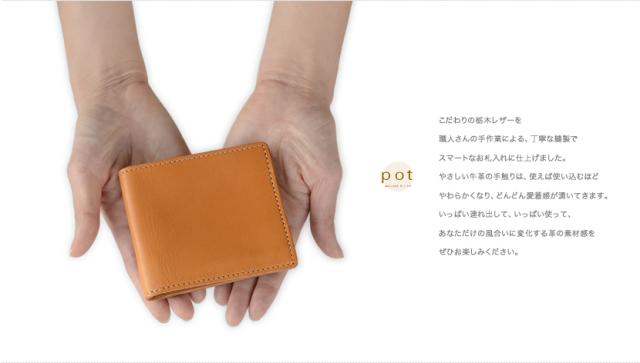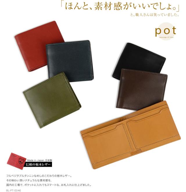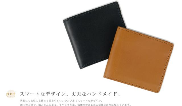 財布 二つ折り財布 日本製 栃木レザー メンズ レディース 二つ折り お札入れ カード入れ pot ポット