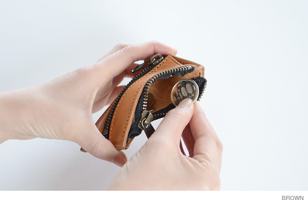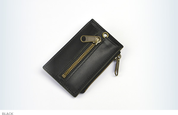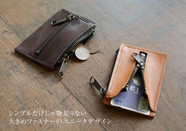 大きめファスナーがユニークなデザイン!存在感のある金古美金具のファスナーはYKK製、いい色の牛革は栃木レザー。素材とデザインにこだわった、日本製のパスケースです。