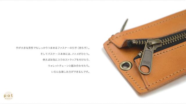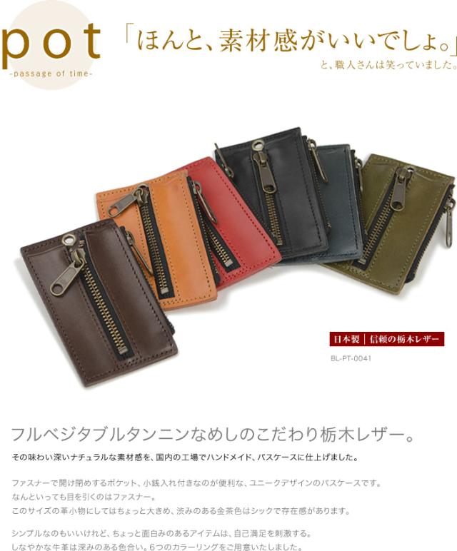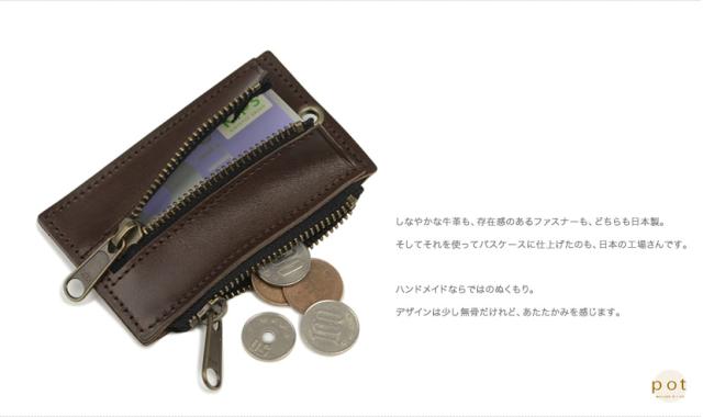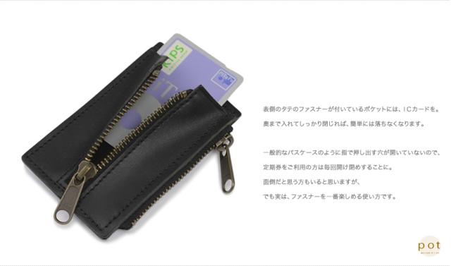 パスケース 定期入れ 日本製 栃木レザー ファスナー 個性 ユニークデザイン メンズ レディース pot ポット