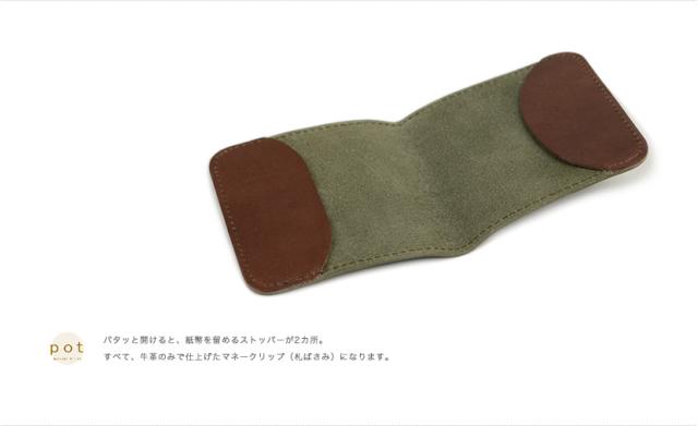 紙幣をただシンプルにかっこよく持つ、ナチュラルで心地いい牛革の手触り、ツートンカラーのマネークリップです。