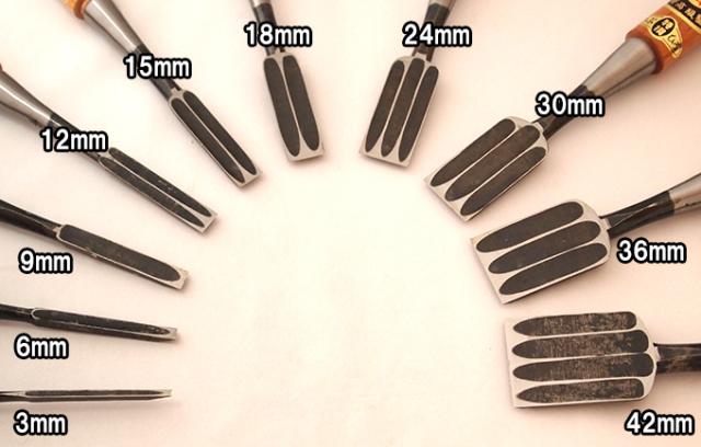 主に造作加工に使う鑿です。 一般的に用途は穴を掘ったり、消す利取ったり色んな用途を兼用できる鑿です。 3 / 6 / 9mm : 1枚裏 12 / 15 / 18mm : 2枚裏 24 / 30 / 36mm : 3枚裏 42mm : 4枚裏 ![]() | ||