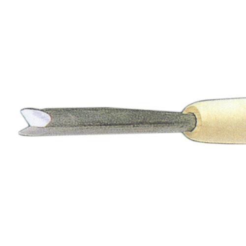 | 三角型はV字型の鋭い切れ込みを入れるのに最適です。 木彫り突き鑿は、彫刻刀よりも刃物が長く、 柄が作品に当たりにくいように作られています。 幅広い用途で使える便利な叩き鑿です。 | ||