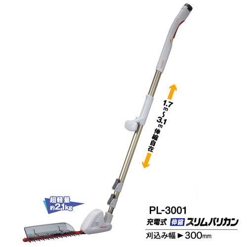 ■充電式伸縮 スリムバリカン(PL-3001)コードレス草刈機(大) ヘッジトリマー 芝刈機 軽量 ニッコー リチウムイオン電池