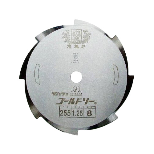 | お得な10枚組! 刈払機用刈刃の定番! ■ツムラ 草刈用カッター ゴールドソー ミガキ 8枚刃 穴付 305×1.25×8P ※画像は穴なしタイプです。 穴付きタイプは6つの穴が付いています。