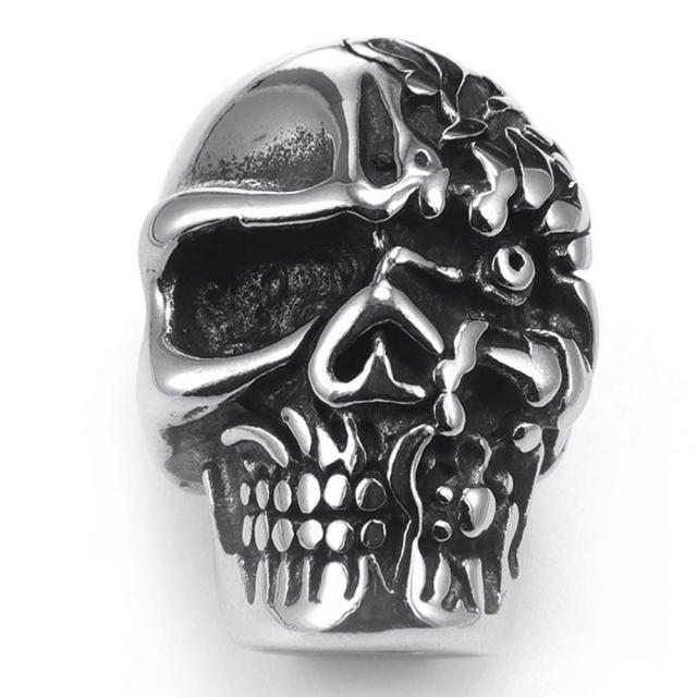 顔半分がゾンビのようになった骸骨をモチーフにした不気味でハードな太さ8ミリサイズ用のワイヤーロープや丸型皮ひもやテグス用のブレスレットやネックレス用の磁石で止めるマグネットエンドパーツ。