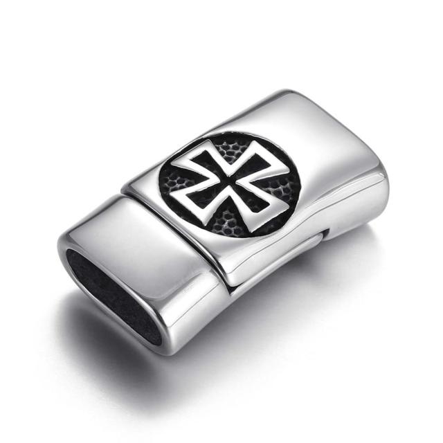 [ 太さ 12mmx6mm フラット用 ] アイアンクロスマグネットエンドステンレスパーツ 1個販売 ラバー ワイヤー ロープ ブレスレット バングル 止具 留具 金具 修理 DIY 手作り ハンドメイド クラフト 磁石 材料 留め金 12ミリ 6ミリ 2本差し 2連風 部品 鉄十字 十字架